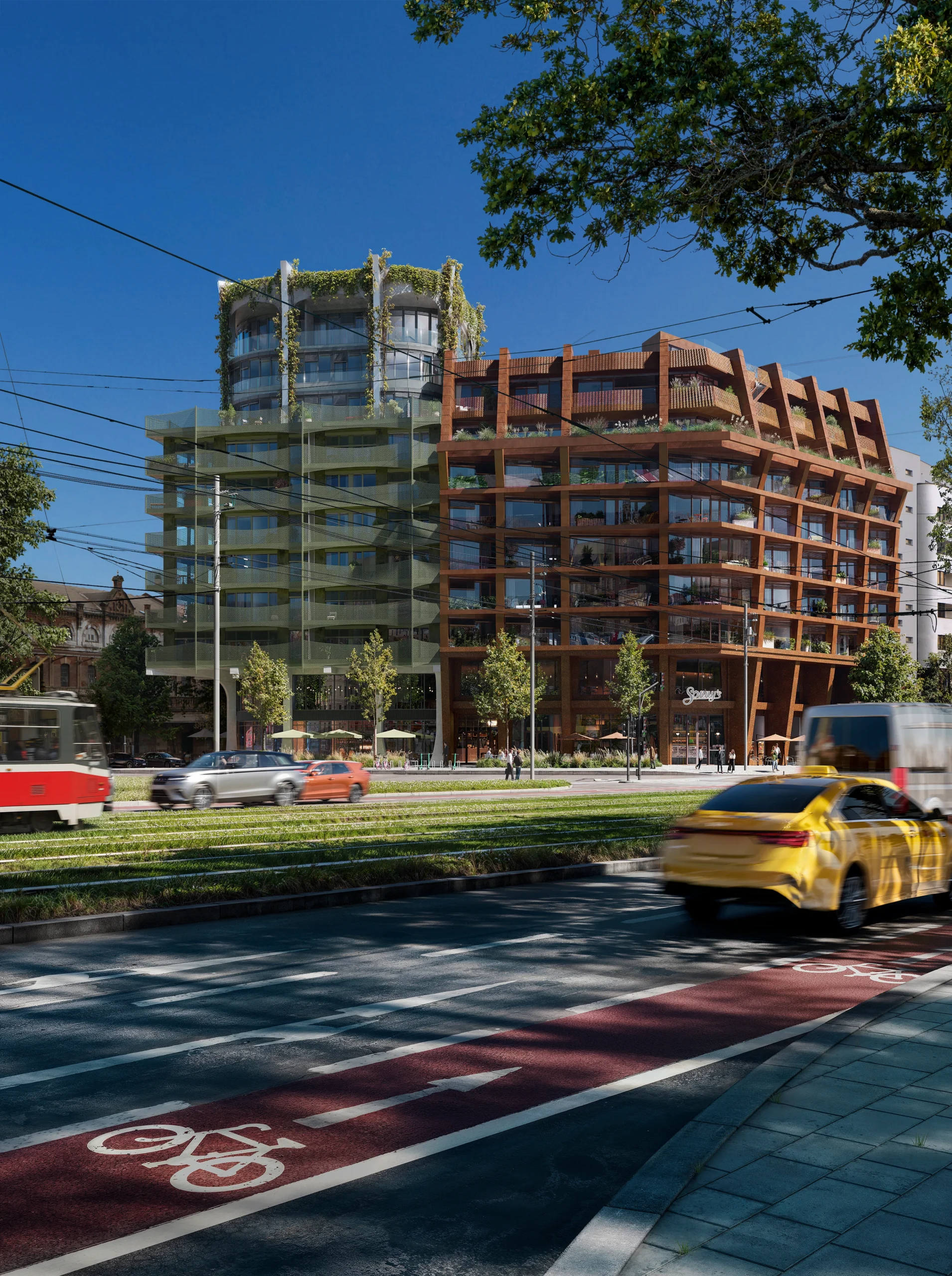 The residential project Nová Amerika is located right in the center of Brno. The project is inspired by elements of New York architecture. From residential buildings with characteristic bricks, fire escapes, water towers and community roofs, to luxurious metal wrought elements from famous skyscrapers.